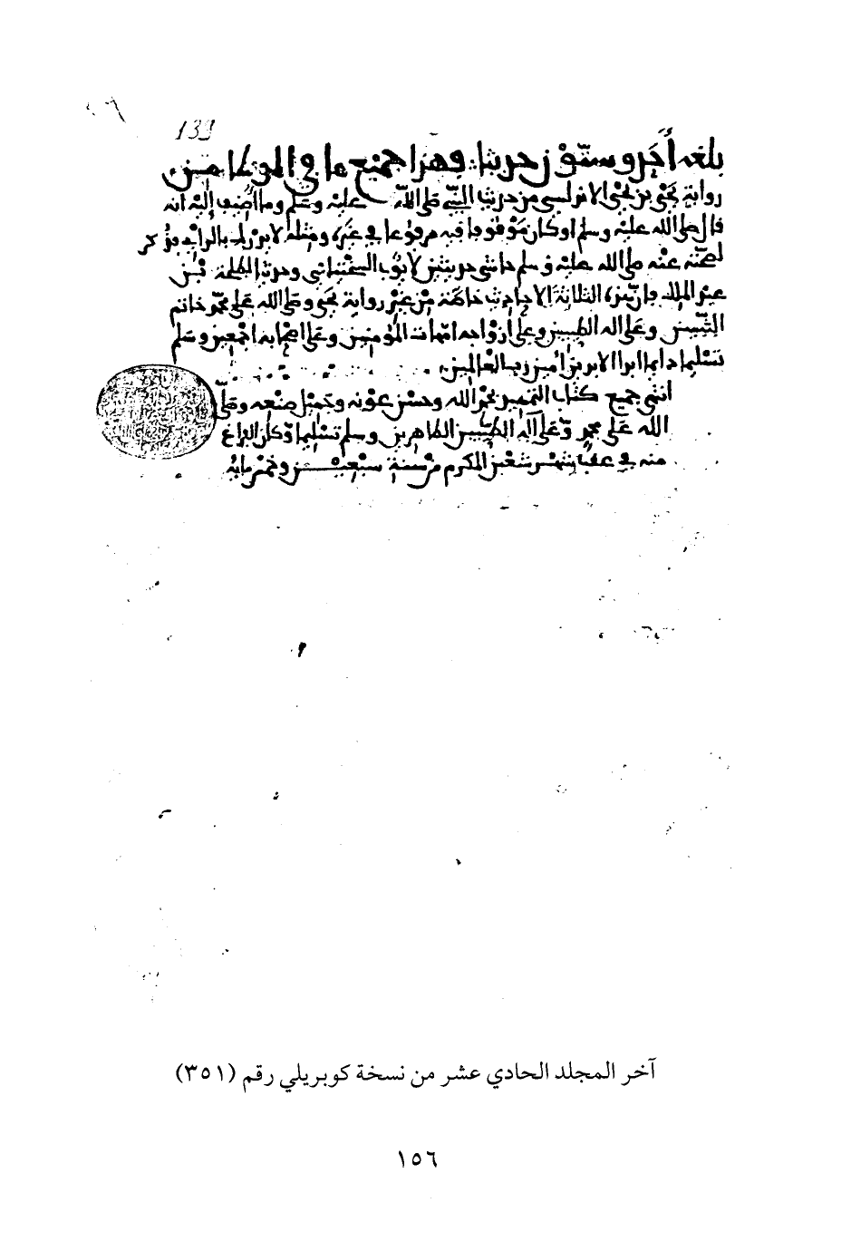 آخر المجلد الحادي عشر من نسخة كوبريلي رقم (٣٥١)