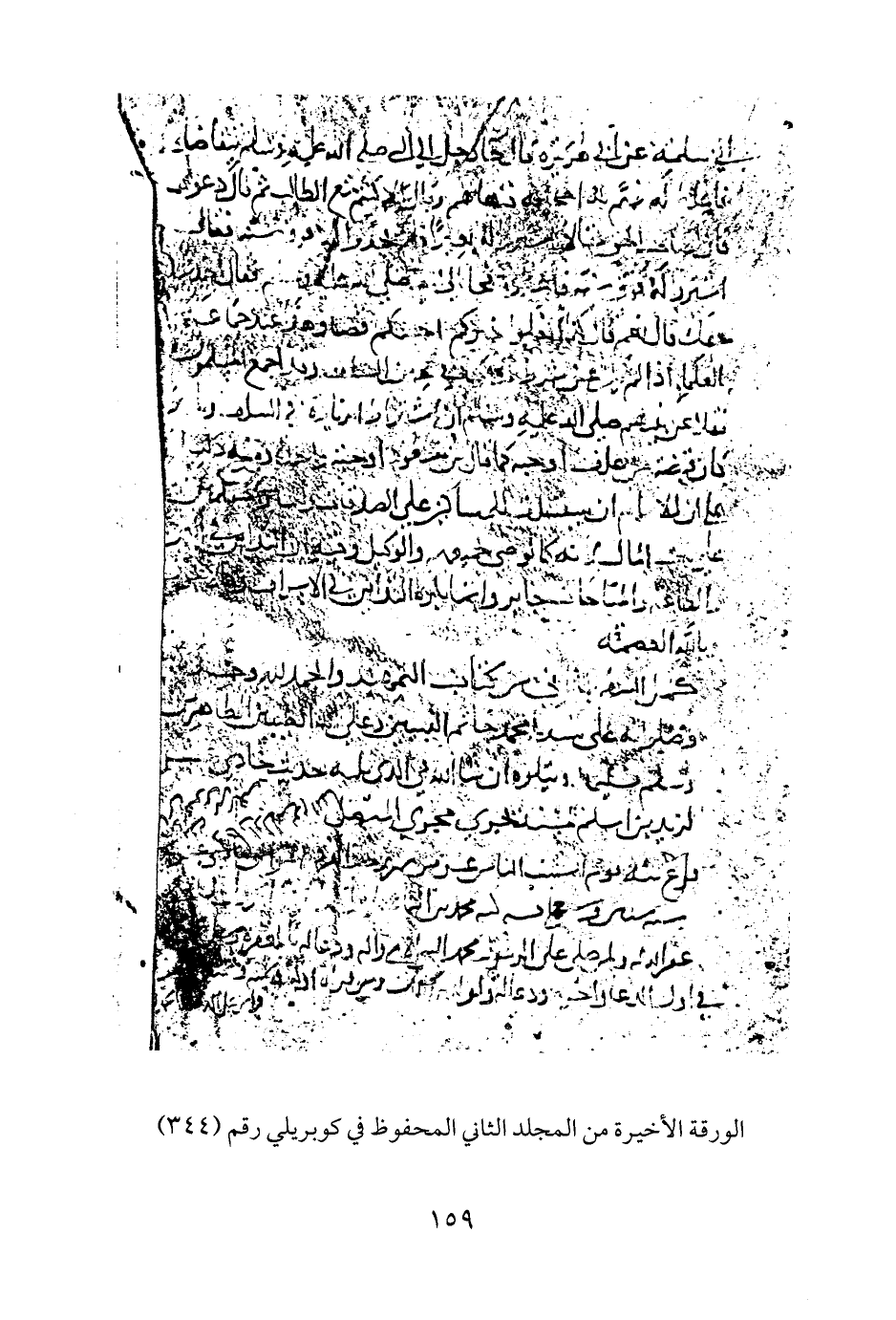 الورقة الأخيرة من المجلد الثاني المحفوظ في كوبريلي رقم (٣٤٤)