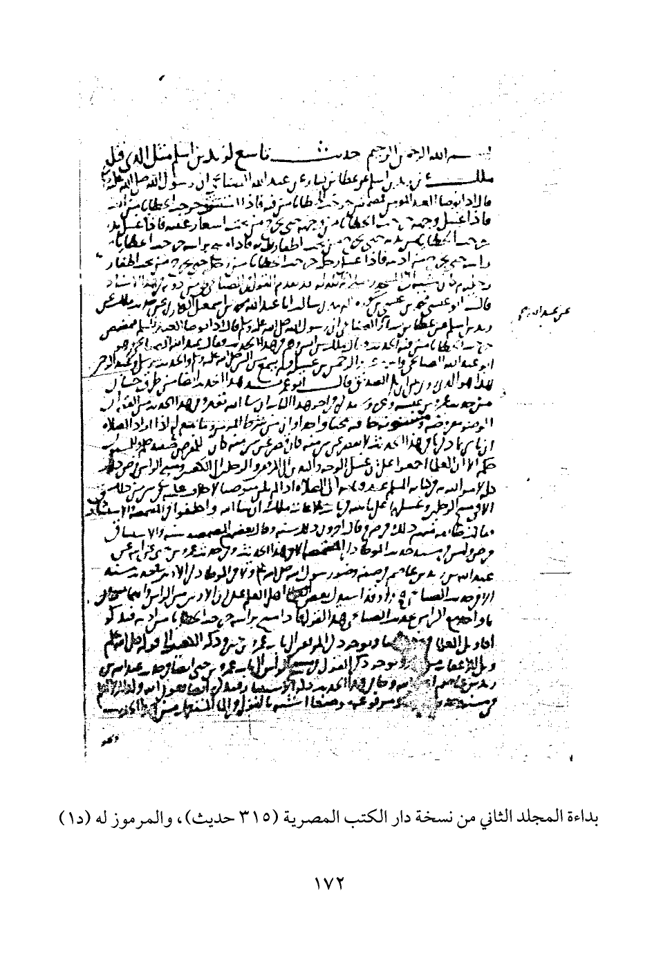 بداءة المجلد الثاني من نسخة دار الكتب المصرية (٣١٥ حديث)، والمرموز له (د ١)