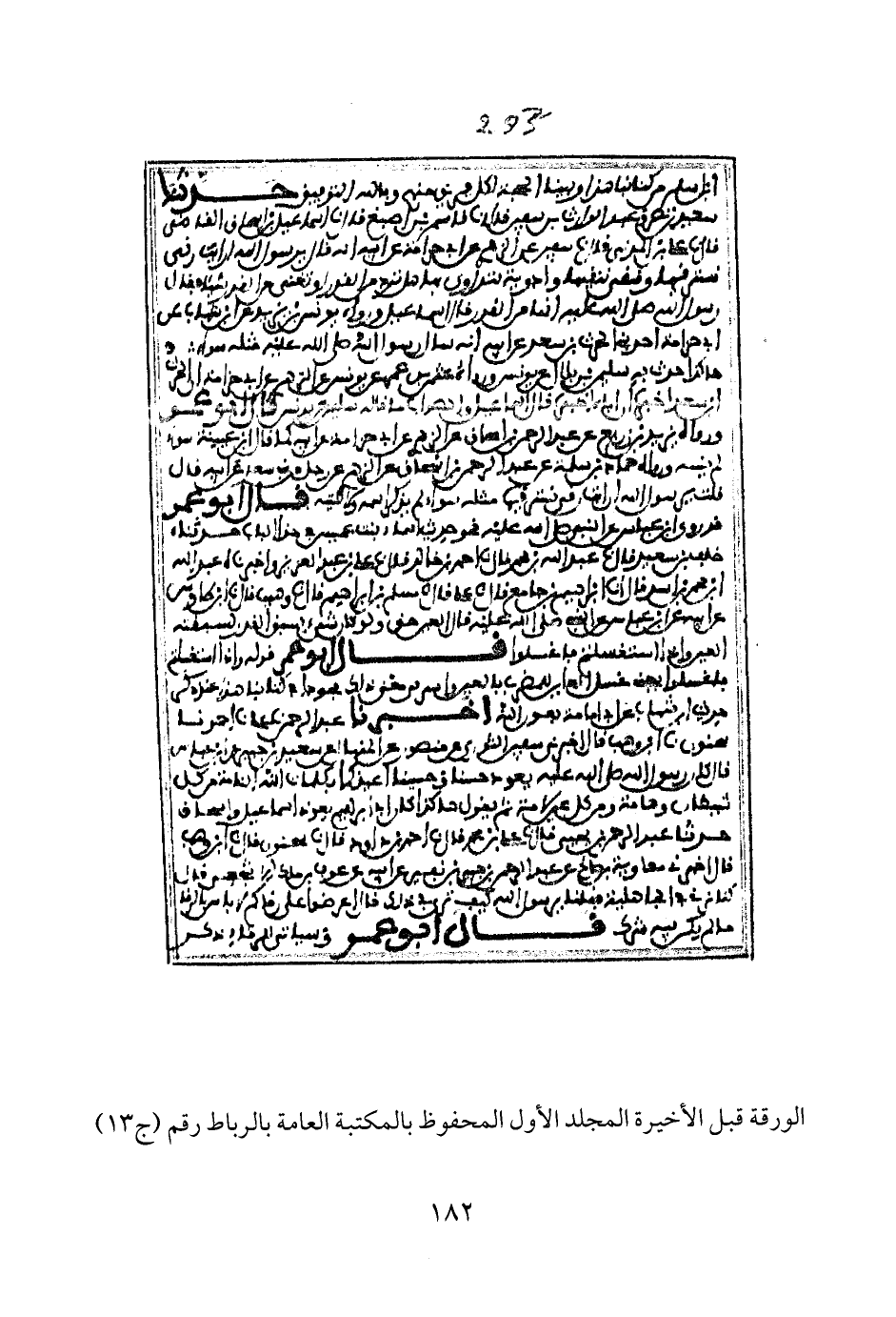 الورقة قبل الأخيرة المجلد الأول المحفوظ بالمكتبة العامة بالرباط رقم (ج ١٣)
