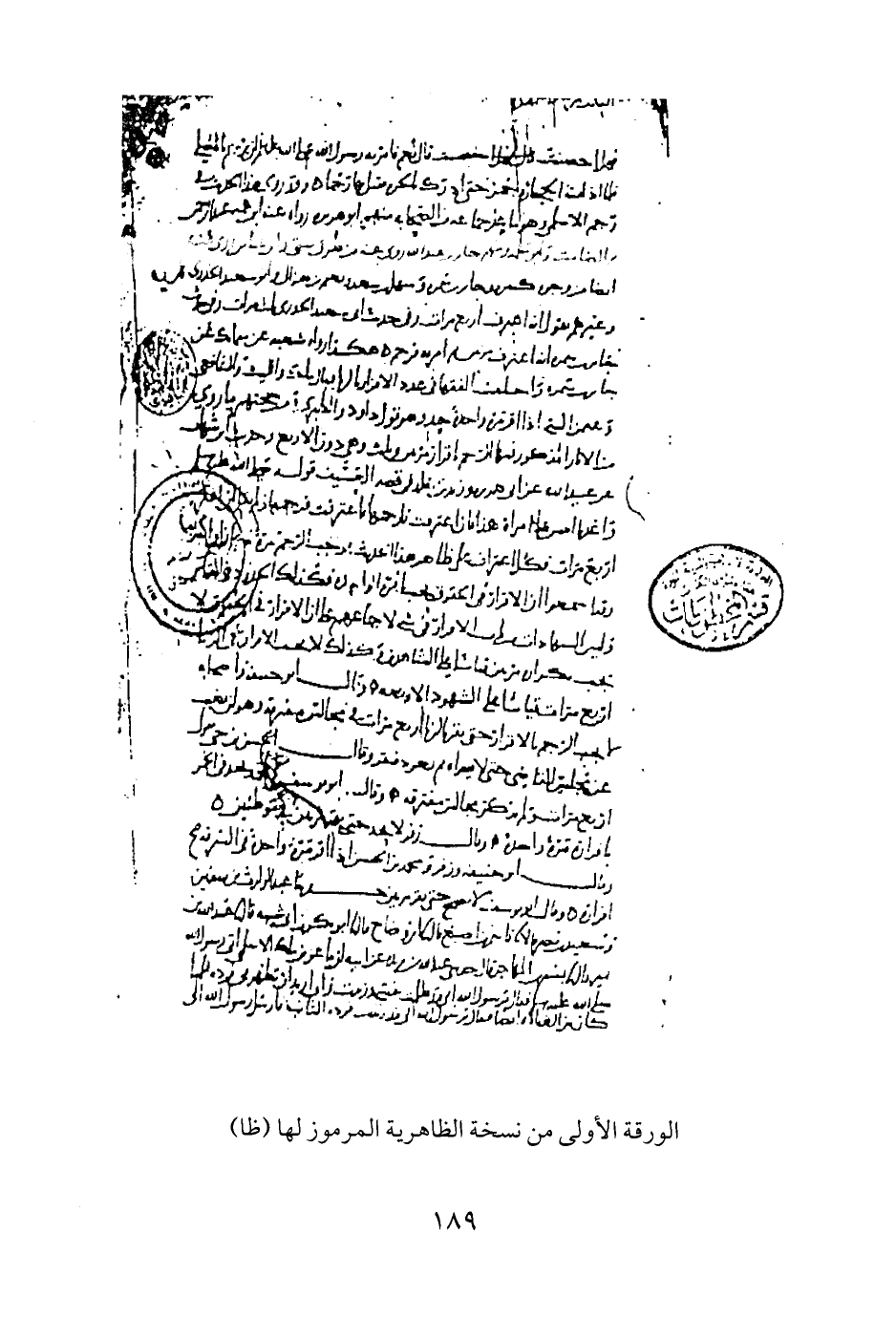 الورقة الأولى من نسخة الظاهرية المرموز لها (ظا)