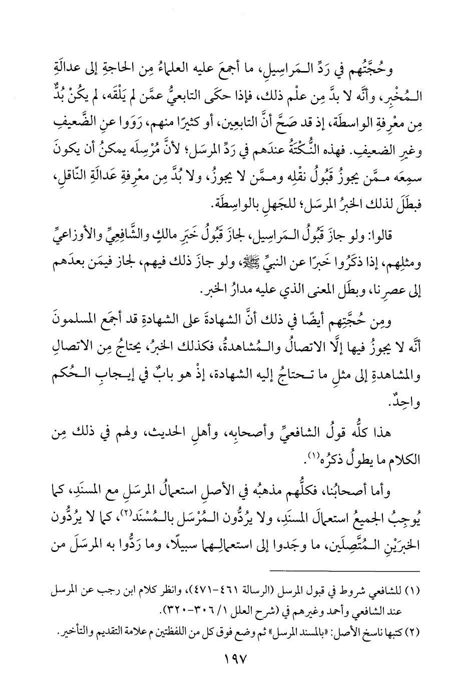 (¬١) للشافعي شروط في قبول المرسل (الرسالة ٤٦١ - ٤٧١)، وانظر كلام ابن رجب عن المرسل عند الشافعي وأحمد وغيرهم في (شرح العلل ١/ ٣٠٦ - ٣٢٠).