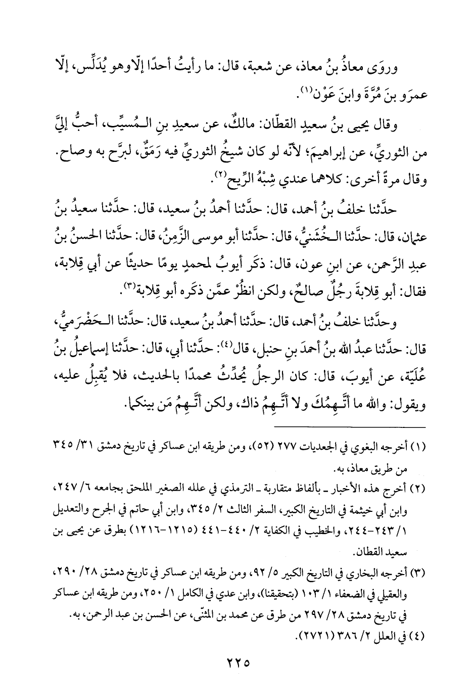 (¬٢) أخرج هذه الأخبار -بألفاظ متقاربة- الترمذي في علله الصغير الملحق بجامعه ٦/ ٢٤٧، وابن أبي خيثمة في التاريخ الكبير، السفر الثالث ٢/ ٣٤٥، وابن أبي حاتم في الجرح والتعديل ١/ ٢٤٣ - ٢٤٤، والخطيب في الكفاية ٢/ ٤٤٠ - ٤٤١ (١٢١٥ - ١٢١٦) بطرق عن يحيى بن سعيد القطان.