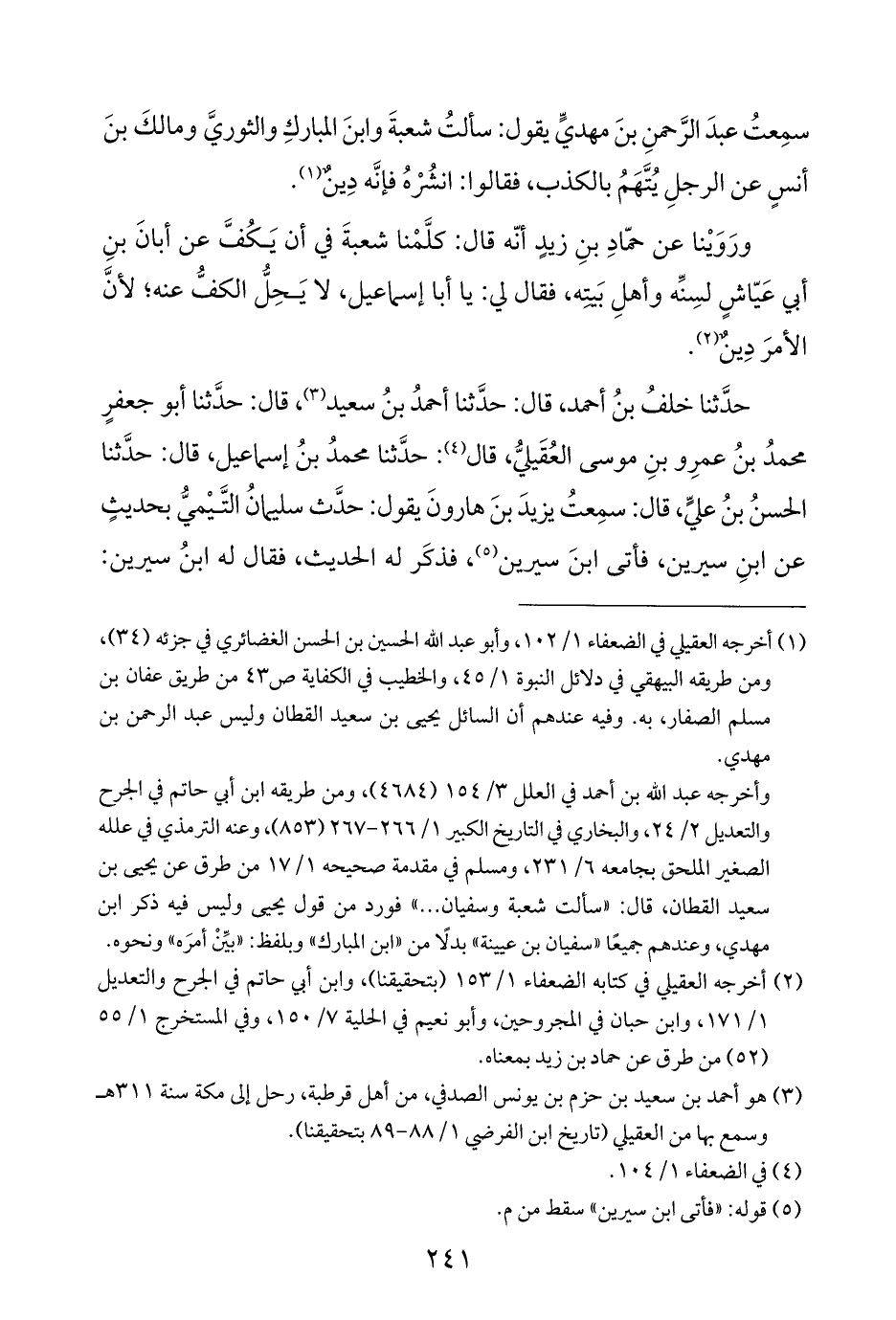 (¬١) أخرجه العقيلي في الضعفاء ١/ ١٠٢، وأبو عبد اللَّه الحسين بن الحسن الغضائري في جزئه (٣٤)، ومن طريقه البيهقي في دلائل النبوة ١/ ٤٥، والخطيب في الكفاية ص ٤٣ من طريق عفان بن مسلم الصفار، به. وفيه عندهم أن السائل يحيى بن سعيد القطان وليس عبد الرحمن بن مهدي.