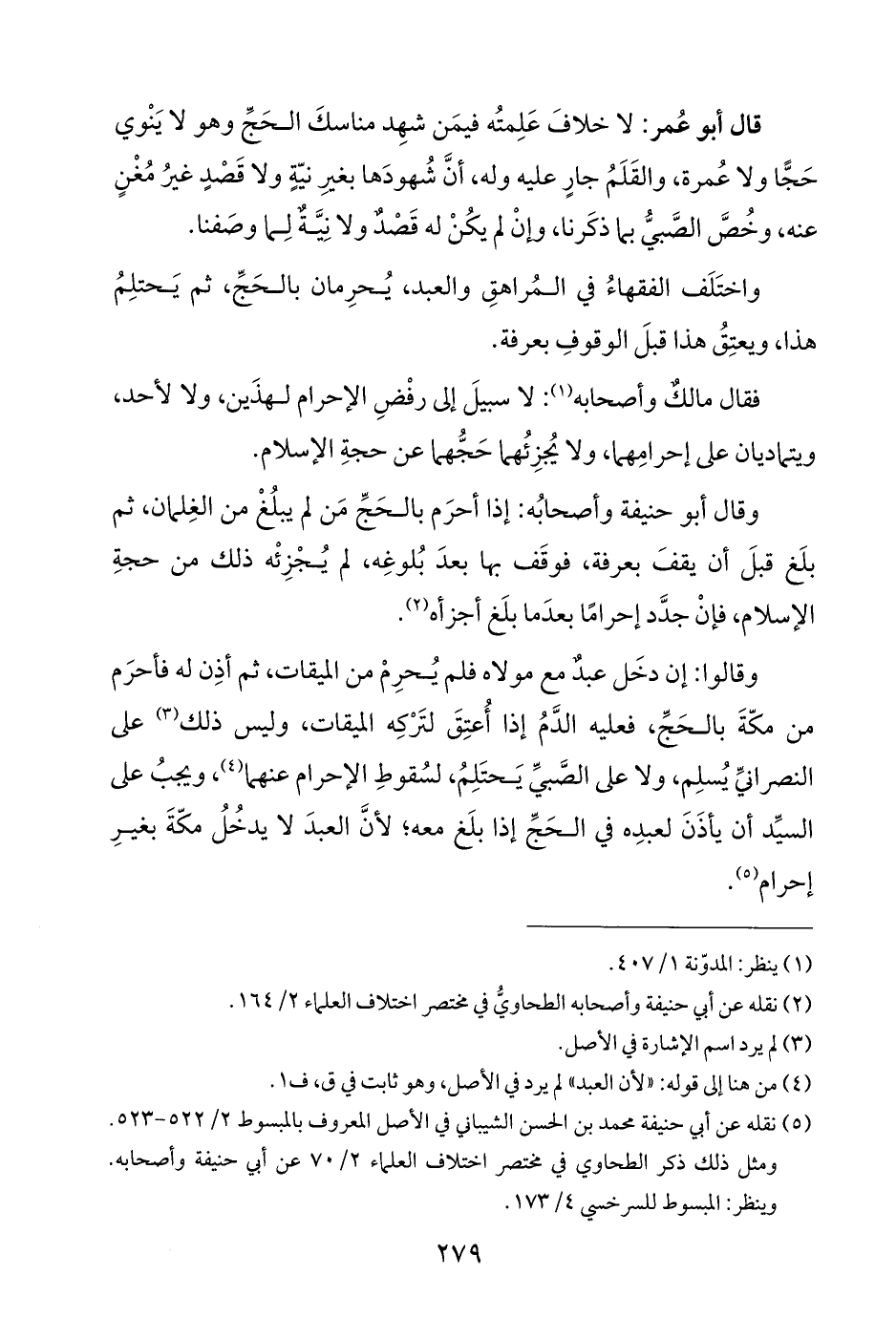 (¬٥) نقله عن أبي حنيفة محمد بن الحسن الشيباني في الأصل المعروف بالمبسوط ٢/ ٥٢٢ - ٥٢٣. ومثل ذلك ذكر الطحاوي في مختصر اختلاف العلماء ٢/ ٧٠ عن أبي حنيفة وأصحابه. وينظر: المبسوط للسرخسي ٤/ ١٧٣.