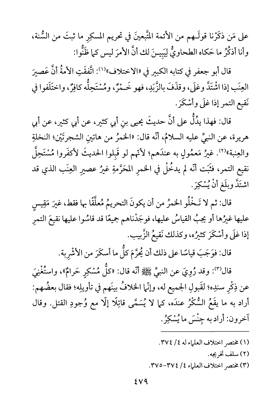 على مَن ذكَرْنا قولَهم من الأئمة المتَّبعينَ في تحريم المسكِرِ ما ثبتَ من السُّنة، وأنا أذكُرُ ما حَكاه الطحاويُّ لِيَبِينَ لك أنَّ الأمرَ ليس كما ظَنُّوا: