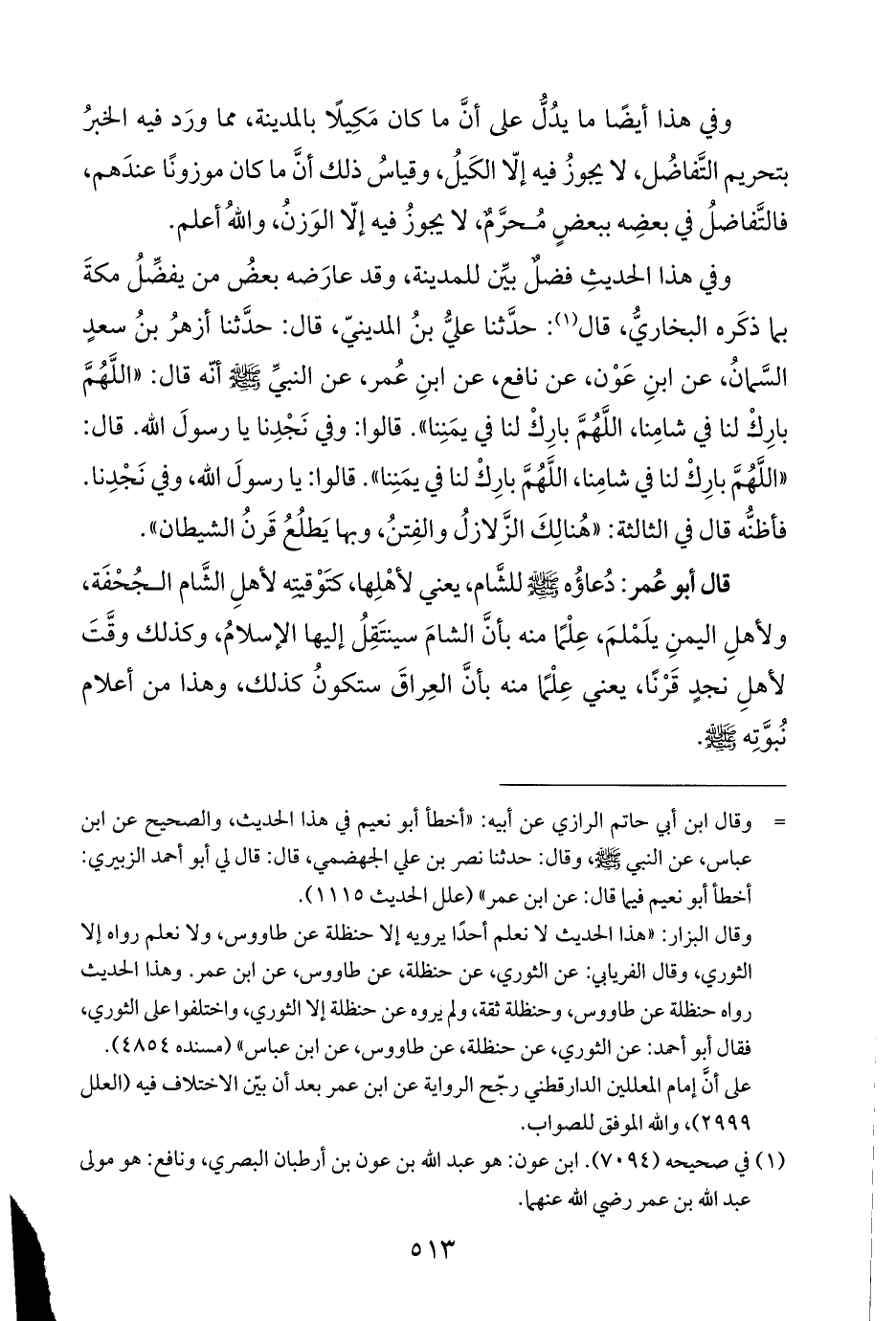 وفي هذا الحديثِ فضلٌ بيِّن للمدينة، وقد عارَضه بعضُ من يفضِّلُ مكةَ بما ذكَره البخاريُّ، قال (¬١): حدَّثنا عليُّ بنُ المدينيّ، قال: حدَّثنا أزهرُ بنُ سعدٍ السَّمانُ، عن ابنِ عَوْن، عن نافع، عن ابنِ عُمر، عن النبيِّ -صلى اللَّه عليه وسلم- أنّه قال: "اللَّهُمَّ بارِكْ لنا في شامِنا، اللَّهُمَّ بارِكْ لنا في يمَنِنا". قالوا: وفي نَجْدِنا يا رسولَ اللَّه. قال: "اللَّهُمَّ بارِكْ لنا في شامِنا، اللَّهُمَّ بارِكْ لنا في يمَنِنا". قالوا: يا رسولَ اللَّه، وفي نَجْدِنا. فأظنُّه قال في الثالثة: "هُنالِكَ الزَّلازلُ والفِتنُ، وبها يَطلُعُ قَرنُ الشيطان".