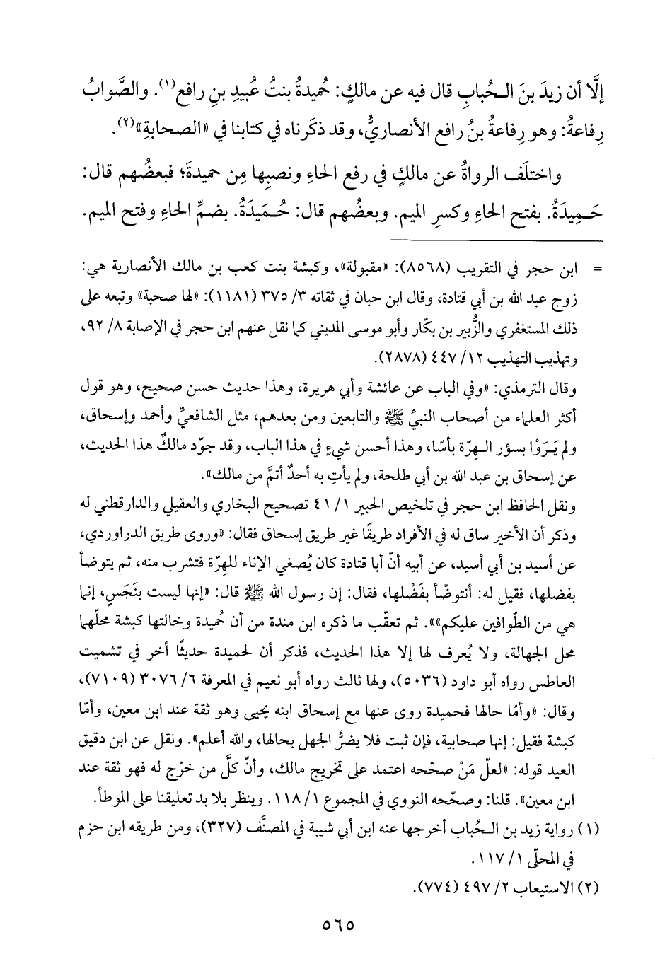 إلَّا أن زيدَ بنَ الحُبابِ قال فيه عن مالكٍ: حُميدةُ بنتُ عُبيدِ بنِ رافع (¬١). والصَّوابُ رِفاعةُ: وهو رِفاعةُ بنُ رافع الأنصاريُّ، وقد ذكَرناه في كتابنا في "الصحابةِ" (¬٢).