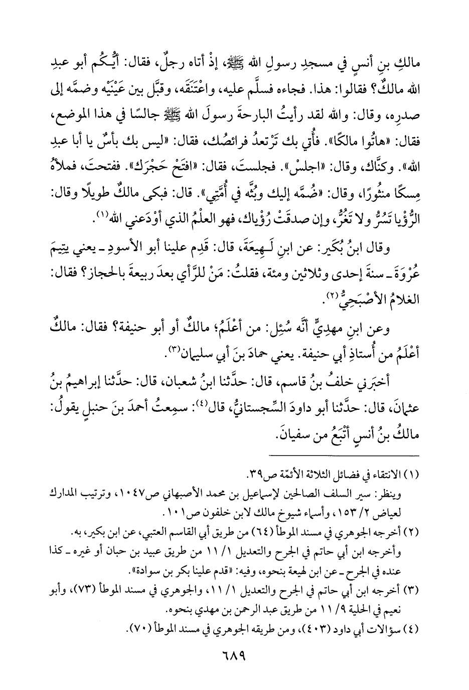 (¬٣) أخرجه ابن أبي حاتم في الجرح والتعديل ١/ ١١، والجوهري في مسند الموطأ (٧٣)، وأبو نعيم في الحلية ٩/ ١١ من طريق عبد الرحمن بن مهدي بنحوه.