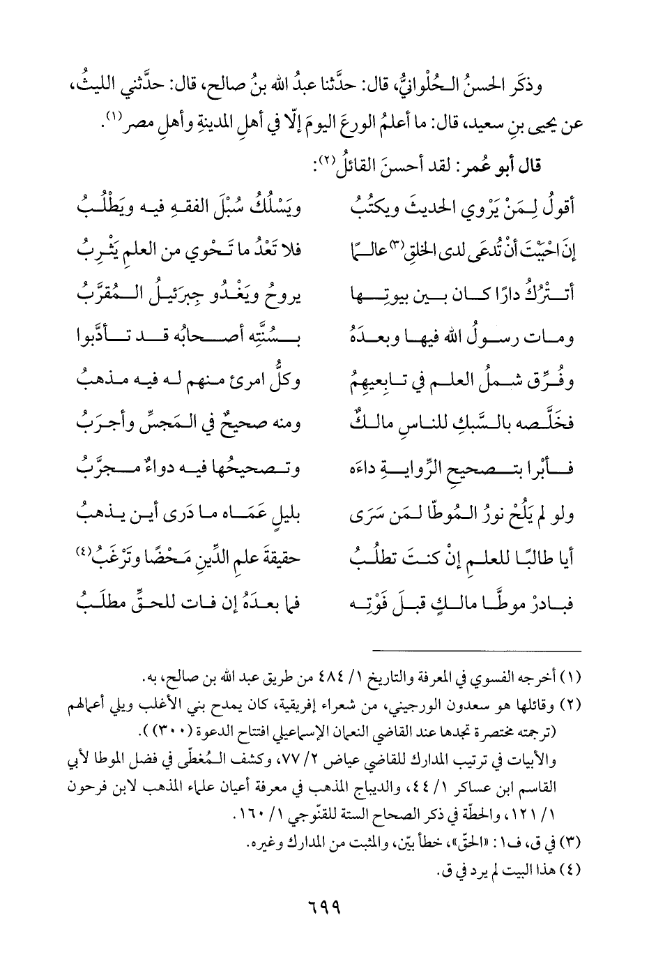 والأبيات في ترتيب المدارك للقاضي عياض ٢/ ٧٧، وكشف المُغطّى في فضل الموطا لأبي القاسم ابن عساكر ١/ ٤٤، والديباج المذهب في معرفة أعيان علماء المذهب لابن فرحون ١/ ١٢١، والحطّة في ذكر الصحاح الستة للقنّوجي ١/ ١٦٠.