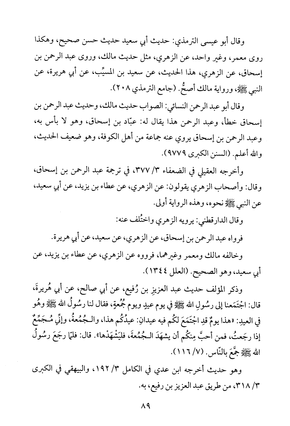 وقال أبو عيسى الترمذي: حديث أبي سعيد حديث حسن صحيح، وهكذا روى معمر، وغير واحد، عن الزهري، مثل حديث مالك، وروى عبد الرحمن بن إسحاق، عن الزهري، هذا الحديث، عن سعيد بن المسيِّب، عن أبي هريرة، عن النبي -صلى اللَّه عليه وسلم-، ورواية مالك أصحُّ. (جامع الترمذي ٢٠٨).