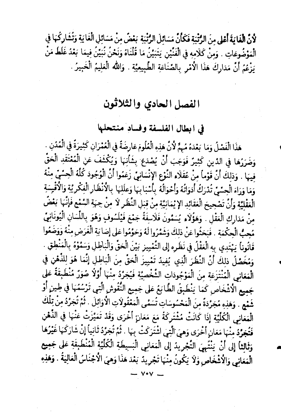 الفصل الحادي والثلاثون في إبطال الفلسفة وفساد منتحلها