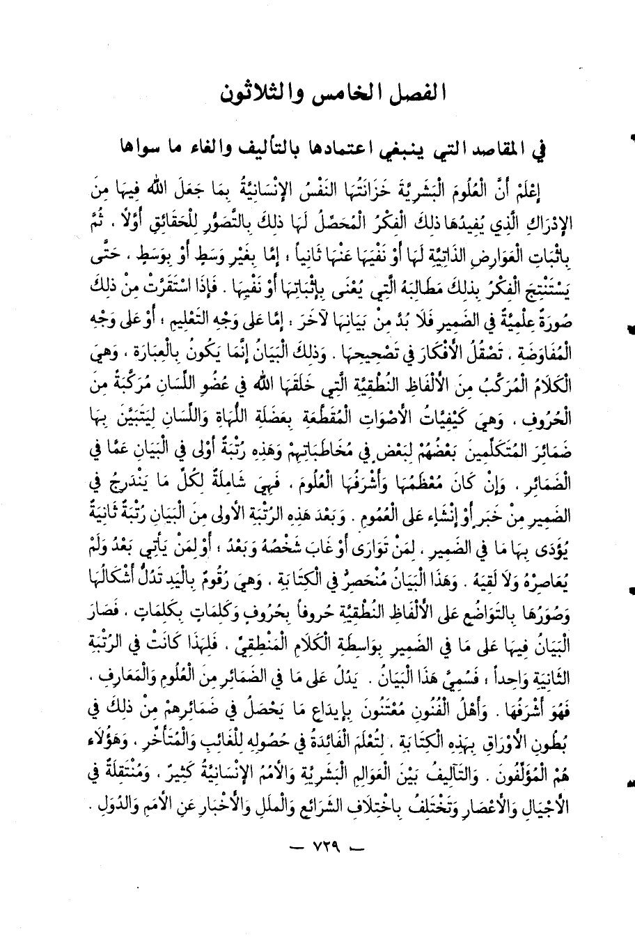 الفصل الخامس والثلاثون في المقاصد التي ينبغي اعتمادها بالتأليف والغاء ما سواها