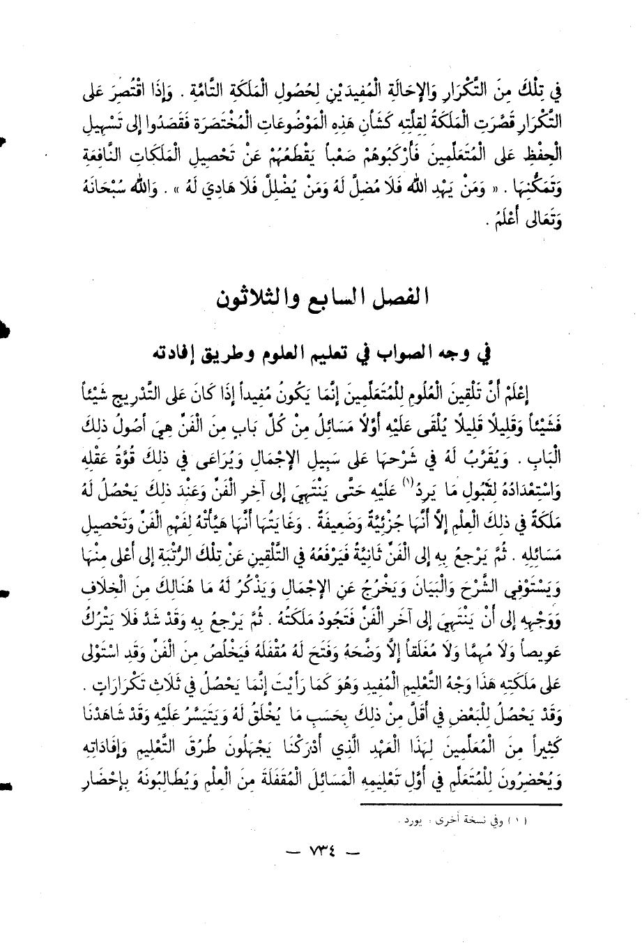 الفصل السابع والثلاثون في وجه الصواب في تعليم العلوم وطريق إفادته