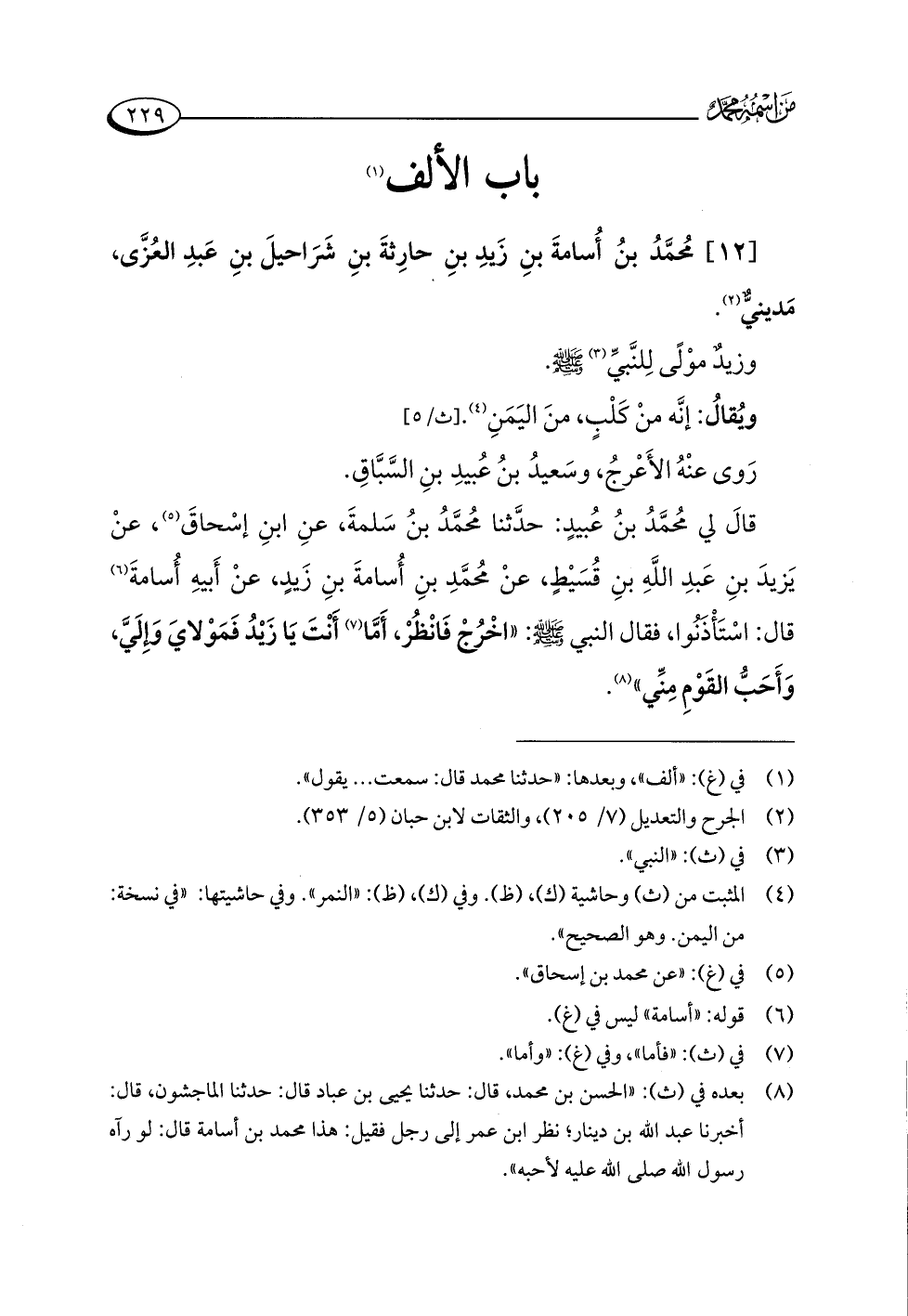 [١٢] مُحمَّدُ بنُ أُسامةَ بنِ زَيدِ بنِ حارِثةَ بنِ شَرَاحيلَ بنِ عَبدِ العُزَّى، مَدينيٌّ (¬٢).