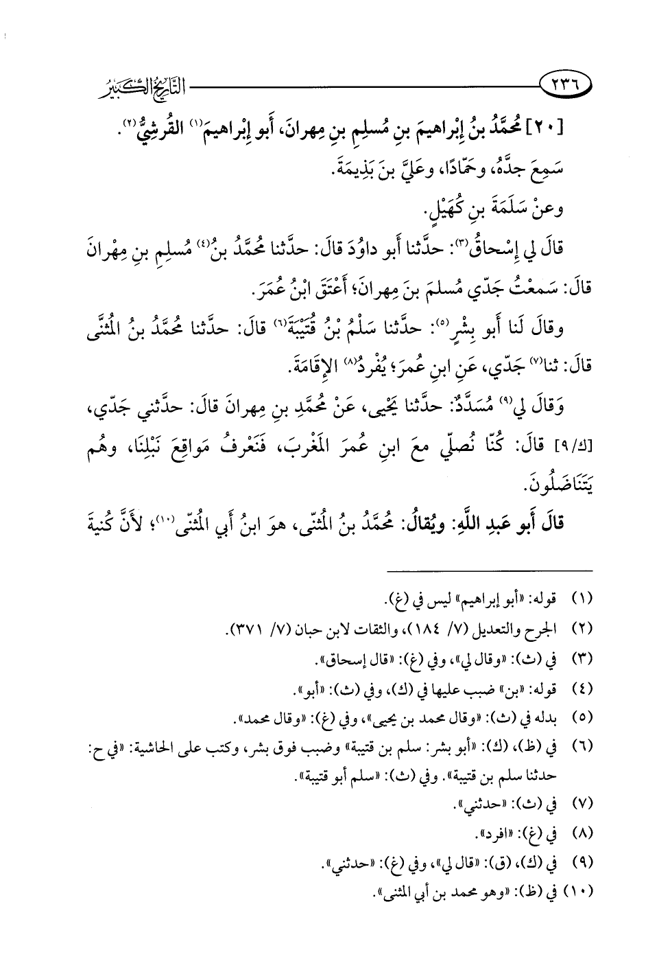 قالَ أَبو عَبدِ اللَّهِ: ويُقالُ: مُحمَّدُ بنُ المُثنّي، هوَ ابنُ أَبي المُثنّى (¬١٠)؛ لأَنَّ كُنيةَ