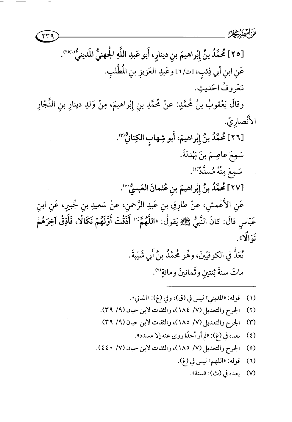 (¬٥) الجرح والتعديل (٧/ ١٨٥)، والثقات لابن حبان (٧/ ٤٤٠).
