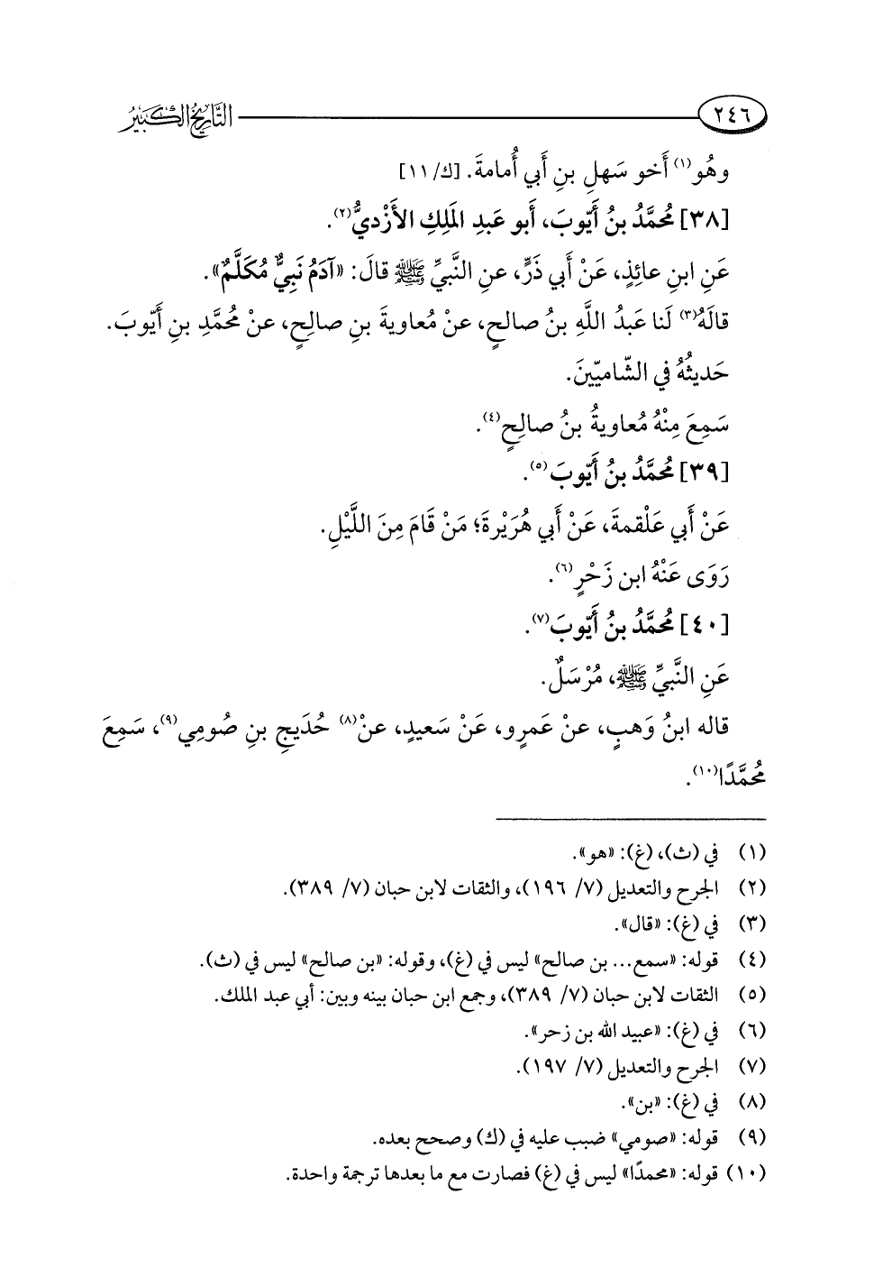 (¬١٠) قوله: "محمدًا" ليس في (غ) فصارت مع ما بعدها ترجمة واحدة.