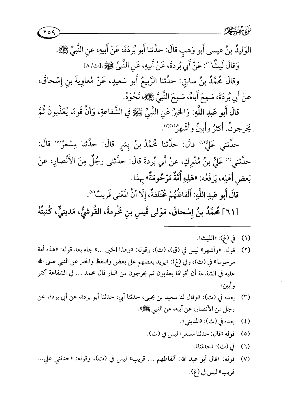(¬٧) قوله: "قال أبو عبد اللَّه: ألفاظهم. . . قريب" ليس في (ث)، وقوله: "حدثني علي. . . قريب" ليس في (غ).