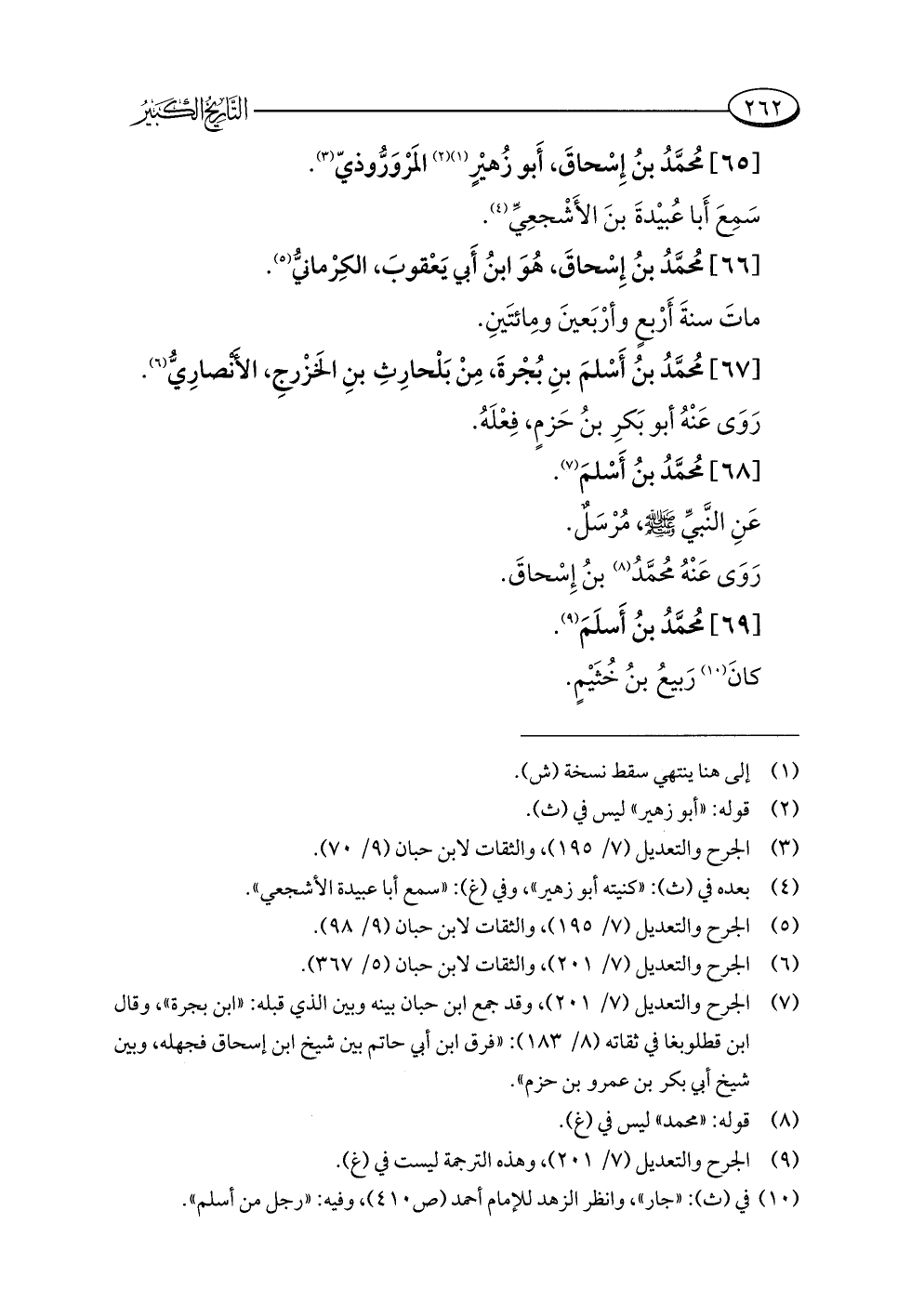 (¬٩) الجرح والتعديل (٧/ ٢٠١)، وهذه الترجمة ليست في (غ).