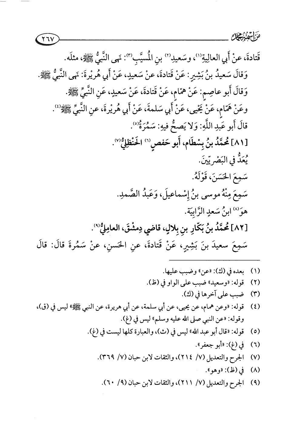 (¬٩) الجرح والتعديل (٧/ ٢١١)، والثقات لابن حبان (٩/ ٦٠).