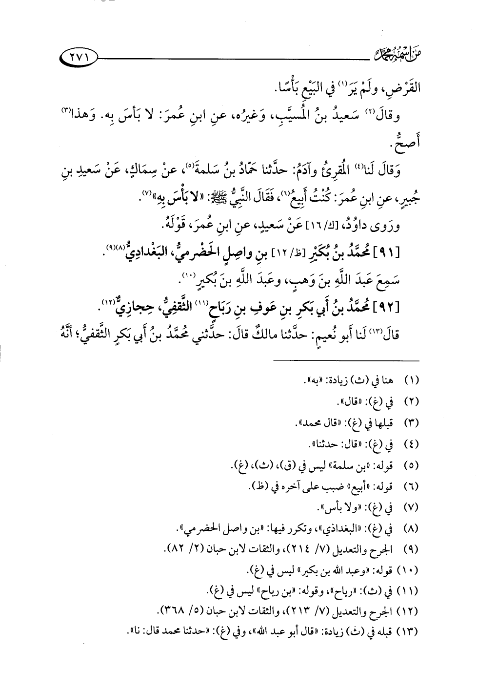 (¬٩) الجرح والتعديل (٧/ ٢١٤)، والثقات لابن حبان (٢/ ٨٢).