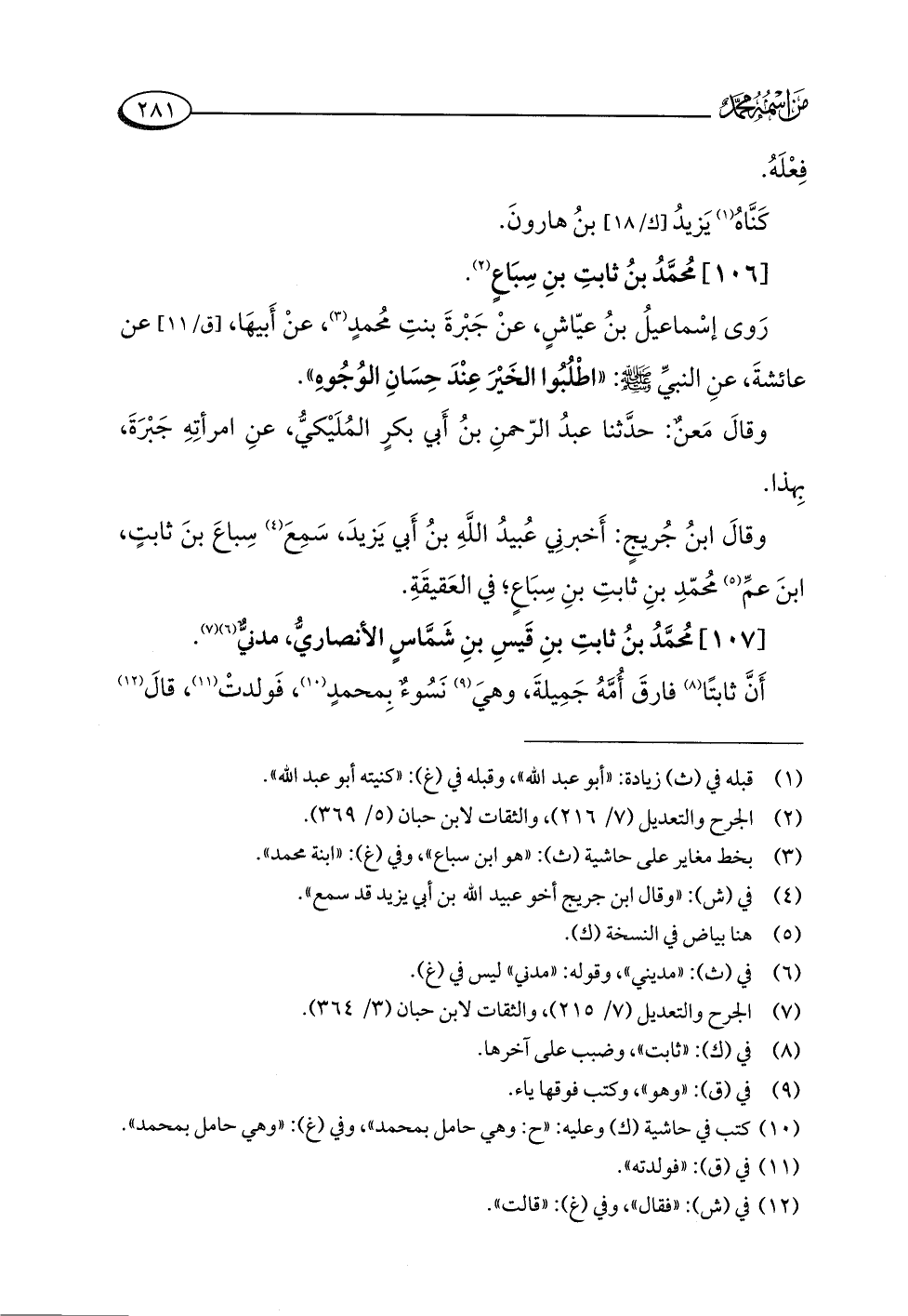 (¬٢) الجرح والتعديل (٧/ ٢١٦)، والثقات لابن حبان (٥/ ٣٦٩).