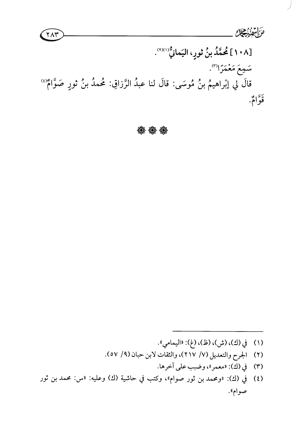 (¬٤) في (ك): "ومحمد بن ثور صوام"، وكتب في حاشية (ك) وعليه: "س: محمد بن ثور صوام".