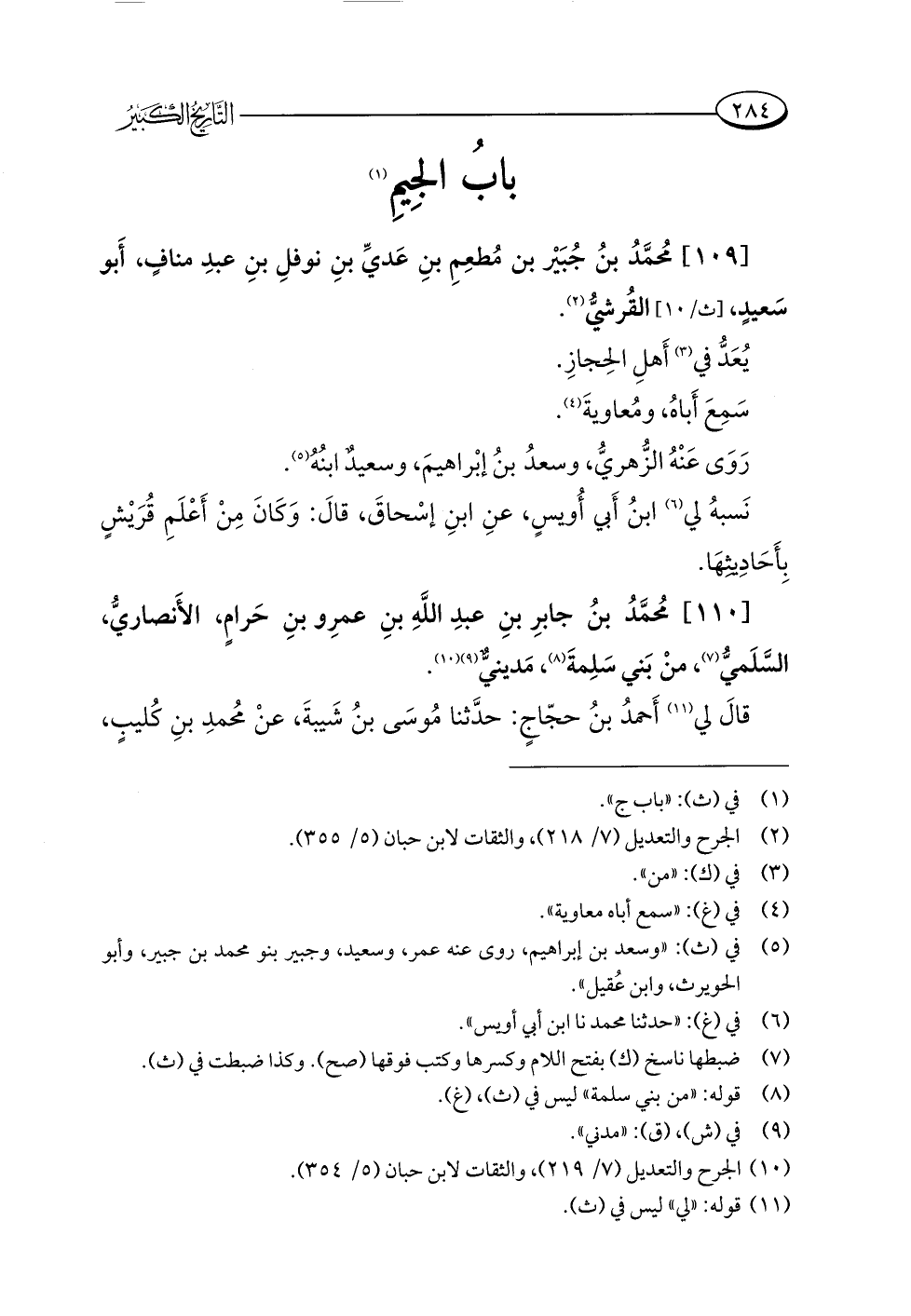 [١٠٩] مُحمَّدُ بنُ جُبَيْر بن مُطعِمِ بنِ عَديِّ بنِ نوفلِ بنِ عبدِ منافٍ، أَبو سَعيدٍ القُرشيُّ (¬٢).