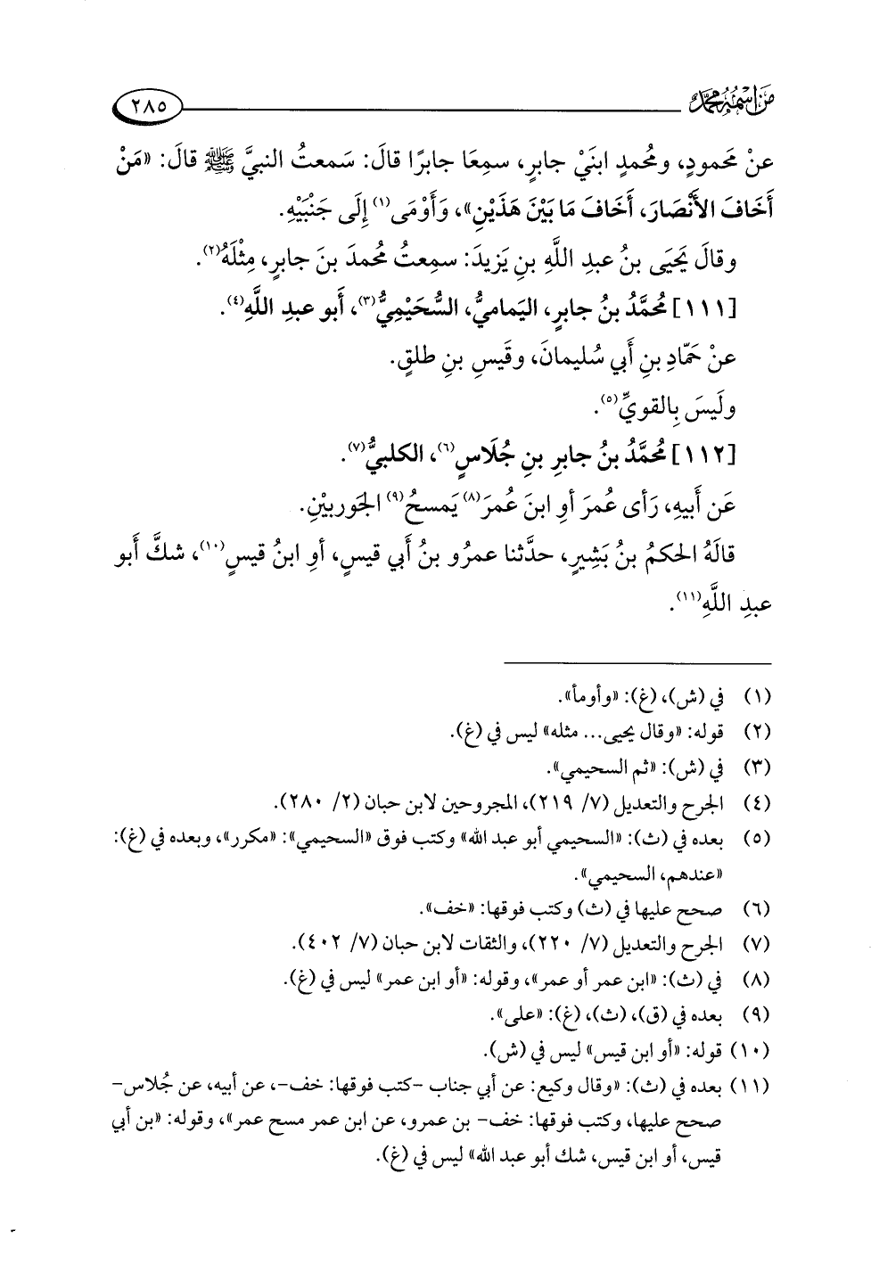 (¬٥) بعده في (ث): "السحيمي أبو عبد اللَّه" وكتب فوق "السحيمي": "مكرر"، وبعده في (غ): "عندهم، السحيمي".