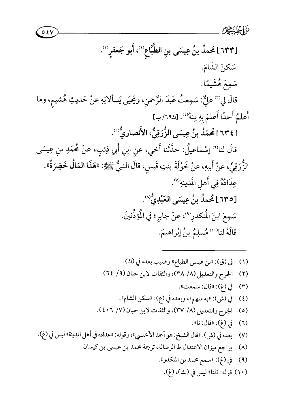 (¬٨) يراجع ميزان الاعتدال ط الرسالة، ترجمة محمد بن عيسى بن كيسان.