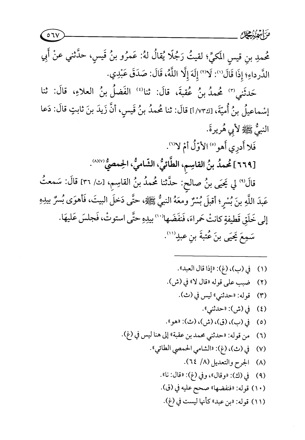 [٦٦٩] مُحمدُ بنُ القاسِمِ، الطَّائيُّ، الشّاميُّ، الحِمصيُّ (¬٧) (¬٨).