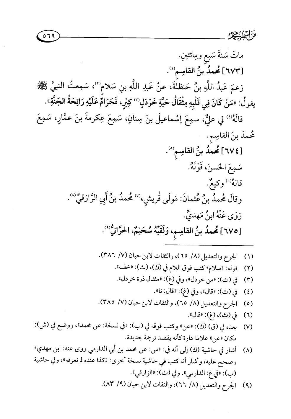 (¬٩) الجرح والتعديل (٨/ ٦٦)، والثقات لابن حبان (٩/ ٨٣).