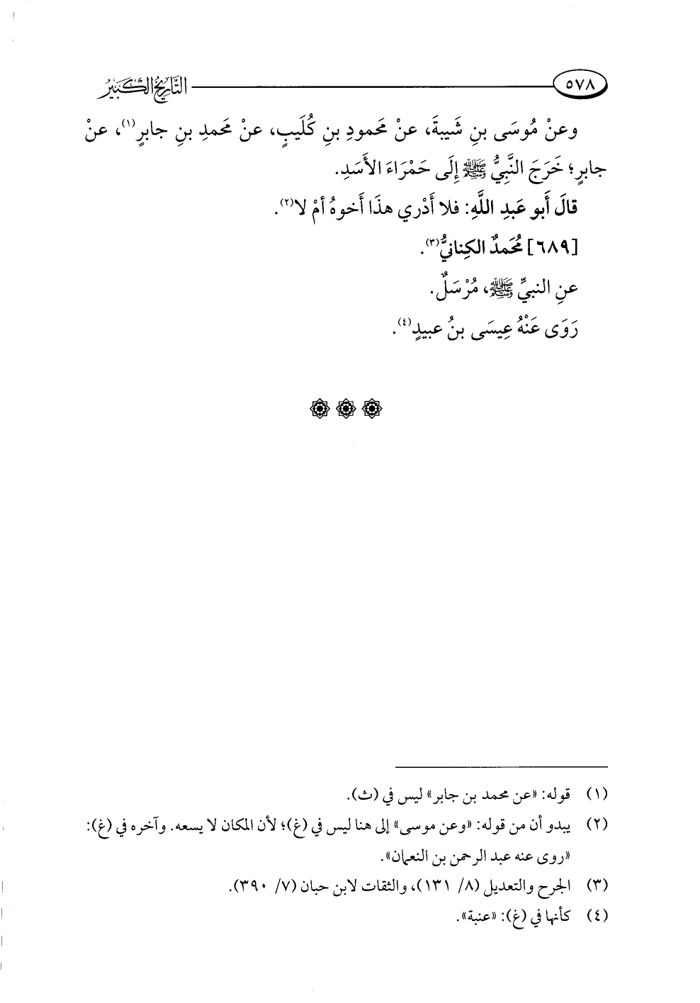 (¬٣) الجرح والتعديل (٨/ ١٣١)، والثقات لابن حبان (٧/ ٣٩٠).