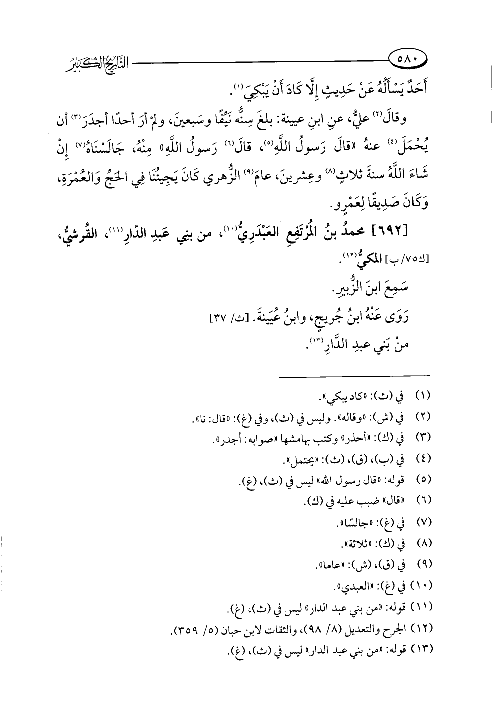 (¬١٢) الجرح والتعديل (٨/ ٩٨)، والثقات لابن حبان (٥/ ٣٥٩).