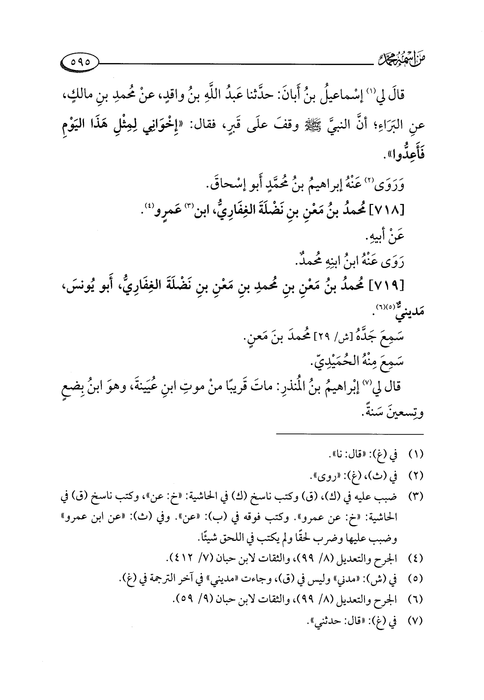 [٧١٩] مُحمدُ بنُ مَعْنِ بنِ مُحمدِ بنِ مَعْنِ بنِ نَضْلَةَ الغِفَارِيُّ، أَبو يُونسَ، مَدينيٌّ (¬٥) (¬٦).