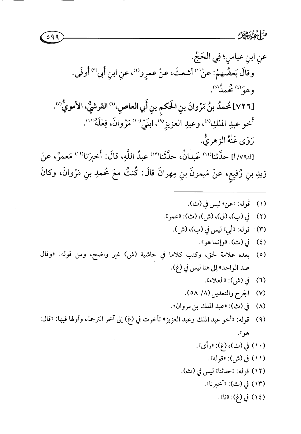 [٧٢٦] مُحمدُ بنُ مَرْوانَ بنِ الحَكمِ بنِ أَبي العاصِ، (¬٦) القرشيُّ، الأمويُّ (¬٧).