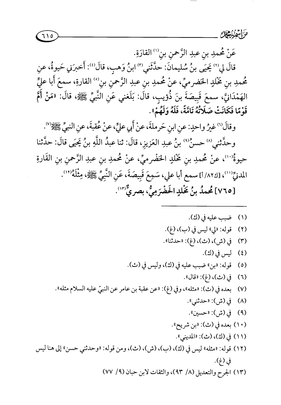(¬١٣) الجرح والتعديل (٨/ ٩٣)، والثقات لابن حبان (٩/ ٧٧).