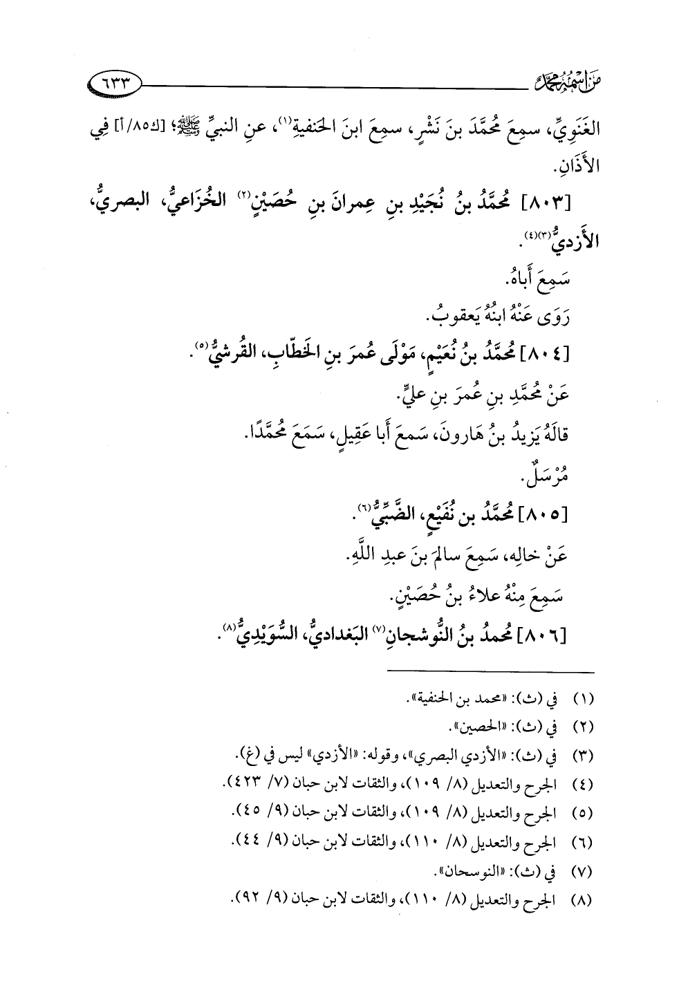 (¬٨) الجرح والتعديل (٨/ ١١٠)، والثقات لابن حبان (٩/ ٩٢).