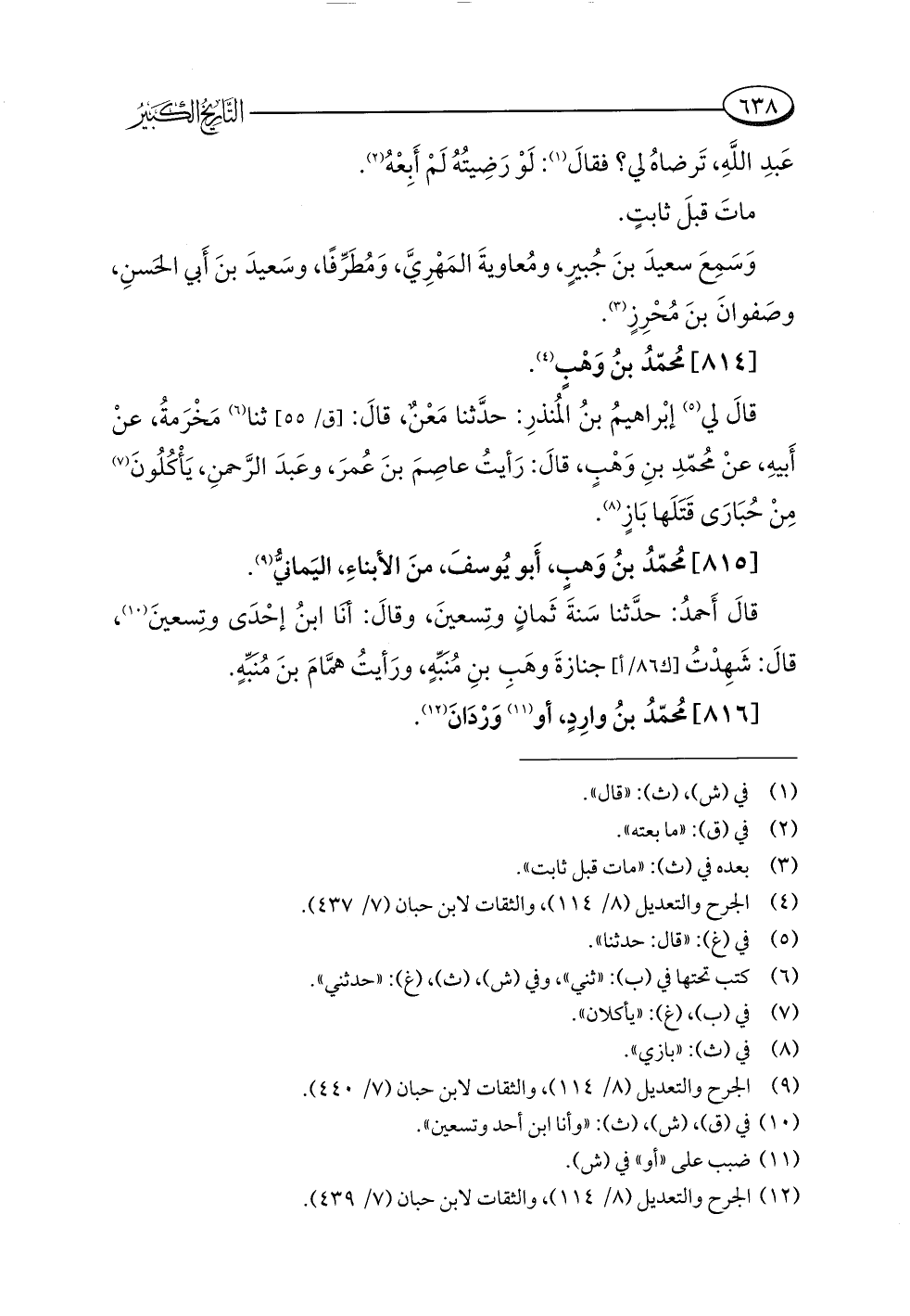(¬١٢) الجرح والتعديل (٨/ ١١٤)، والثقات لابن حبان (٧/ ٤٣٩).