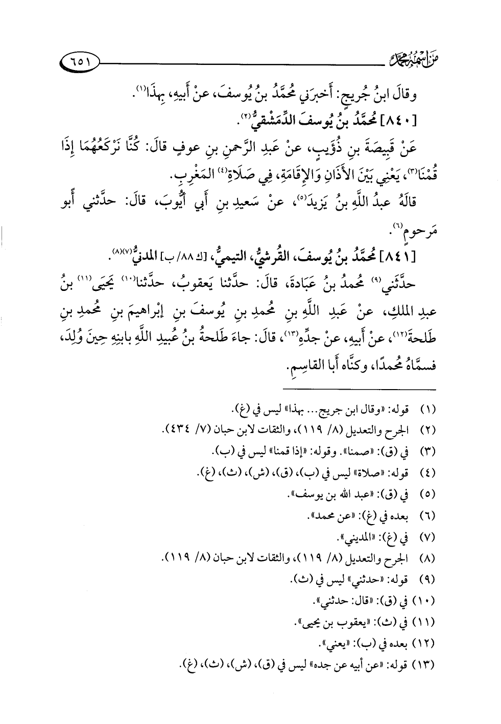 [٨٤١] مُحمَّدُ بنُ يُوسفَ، القُرشيُّ، التيميُّ، المدنيُّ (¬٧) (¬٨).