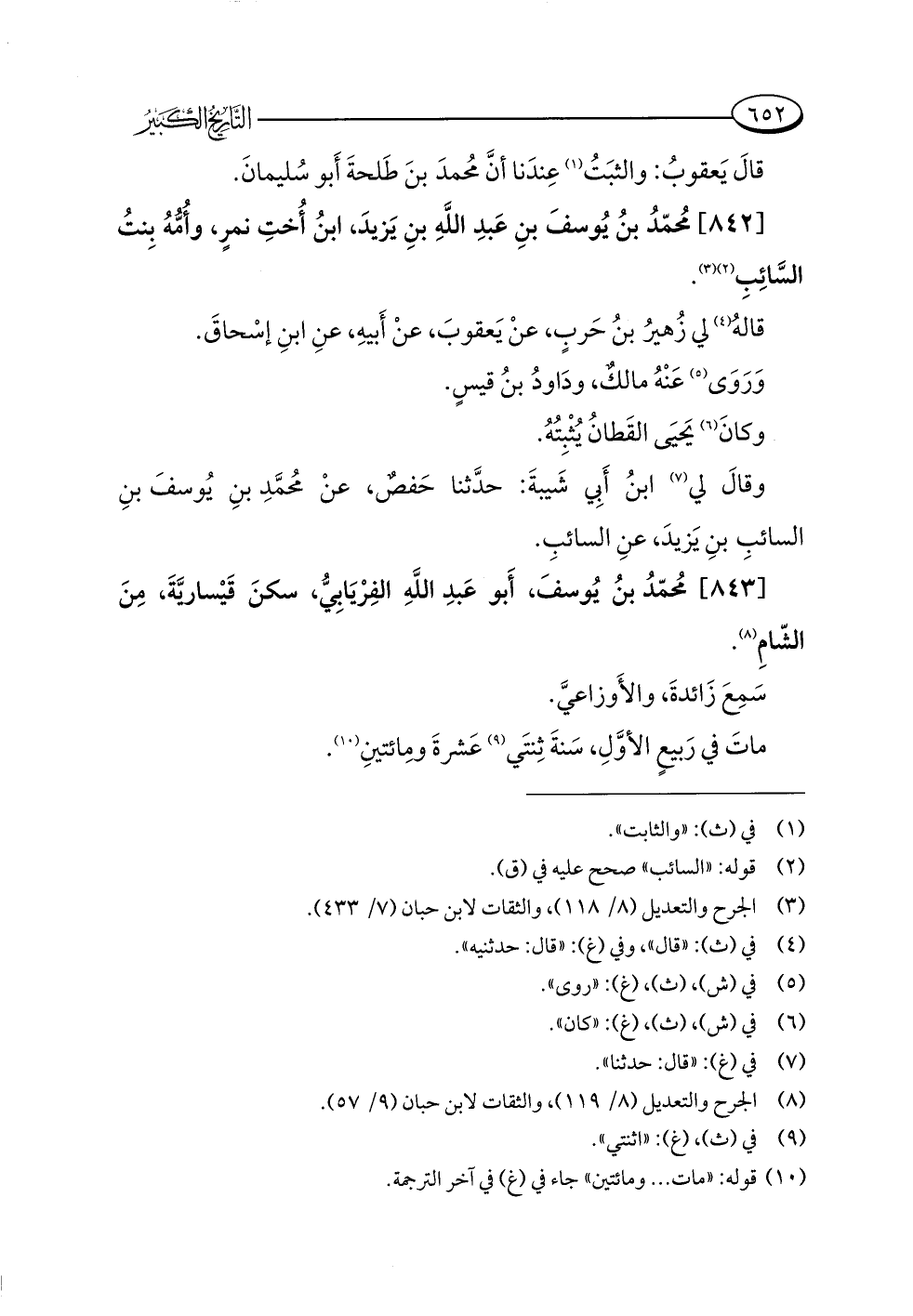 [٨٤٣] مُحمّدُ بنُ يُوسفَ، أَبو عَبدِ اللَّهِ الفِرْيَابِيُّ، سكنَ قَيْسارَّيةَ، مِنَ الشّامِ (¬٨).