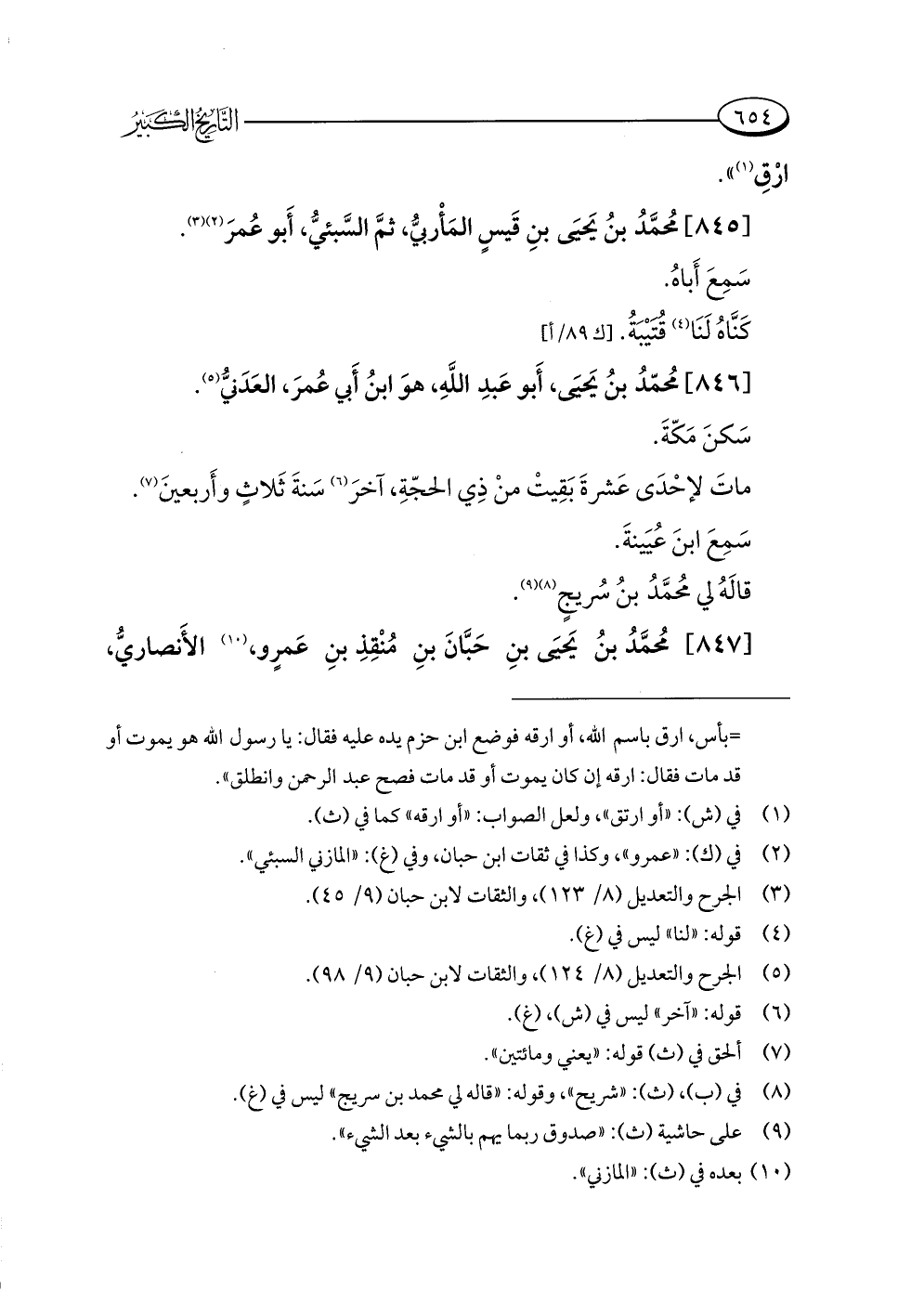 (¬٥) الجرح والتعديل (٨/ ١٢٤)، والثقات لابن حبان (٩/ ٩٨).
