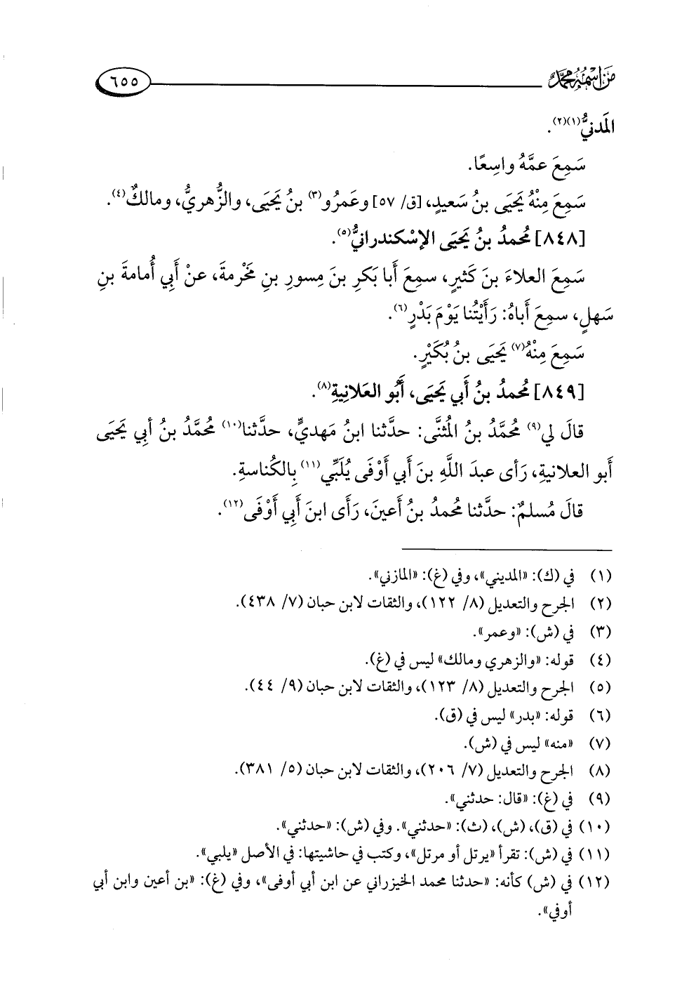 (¬٥) الجرح والتعديل (٨/ ١٢٣)، والثقات لابن حبان (٩/ ٤٤).