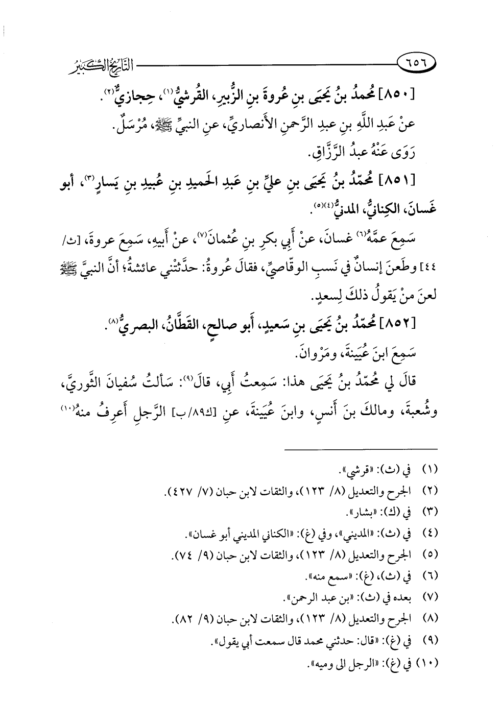 [٨٥١] مُحمّدُ بنُ يَحيَى بنِ عليِّ بنِ عَبدِ الحَميدِ بنِ عُبيدِ بنِ يَسارٍ (¬٣)، أبو غَسانَ، الكِنانيُّ، المدنيُّ (¬٤) (¬٥).