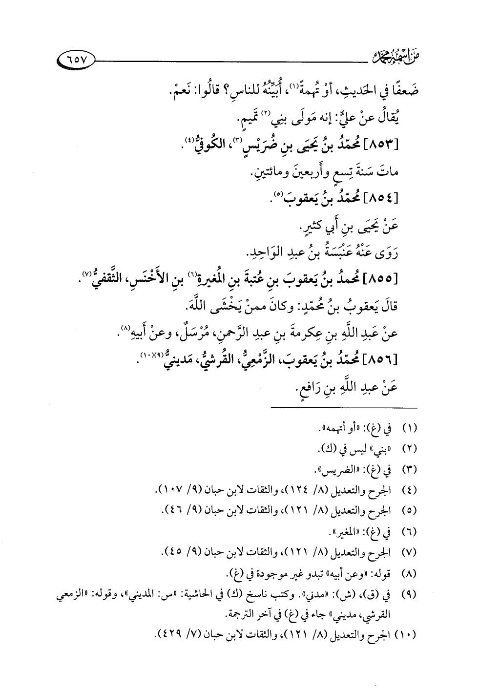 (¬١٠) الجرح والتعديل (٨/ ١٢١)، والثقات لابن حبان (٧/ ٤٢٩).