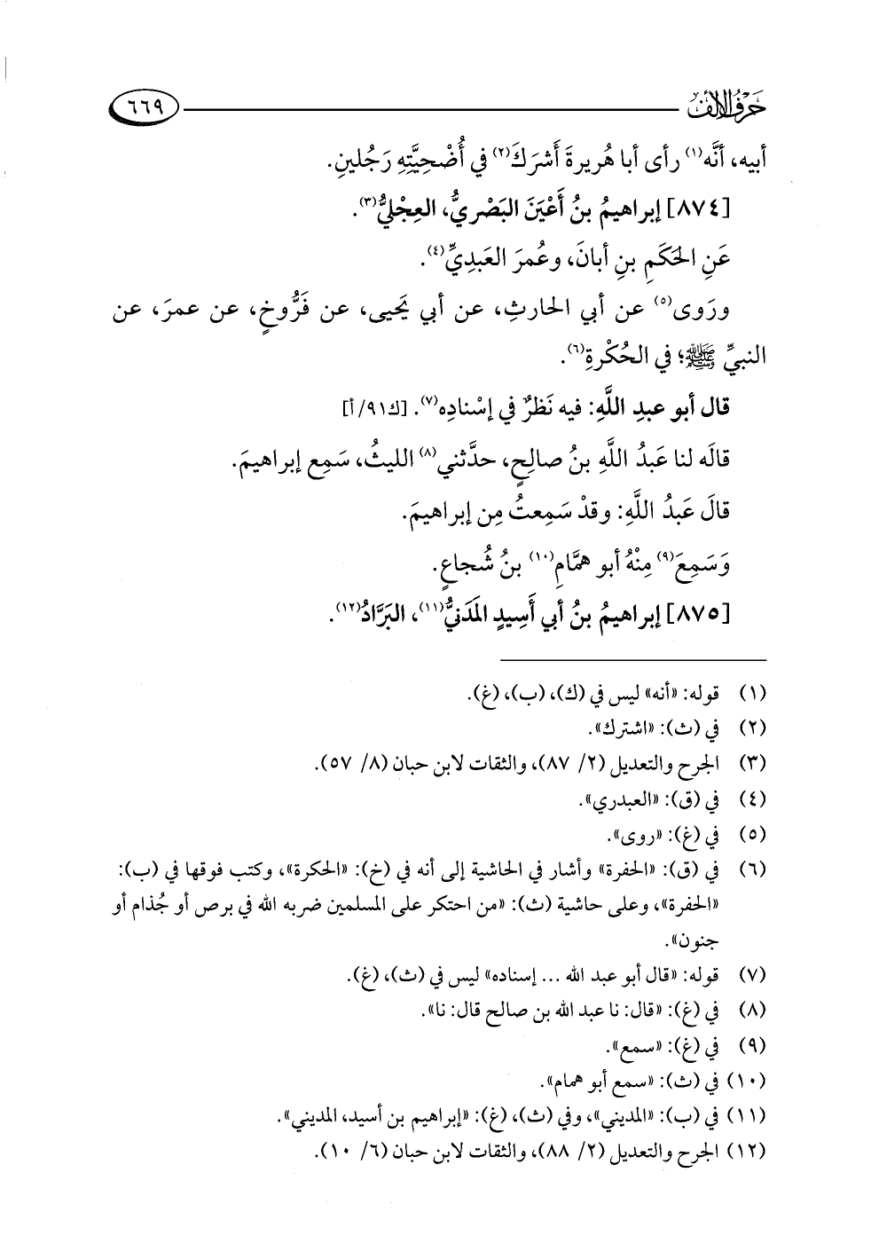 (¬١٢) الجرح والتعديل (٢/ ٨٨)، والثقات لابن حبان (٦/ ١٠).