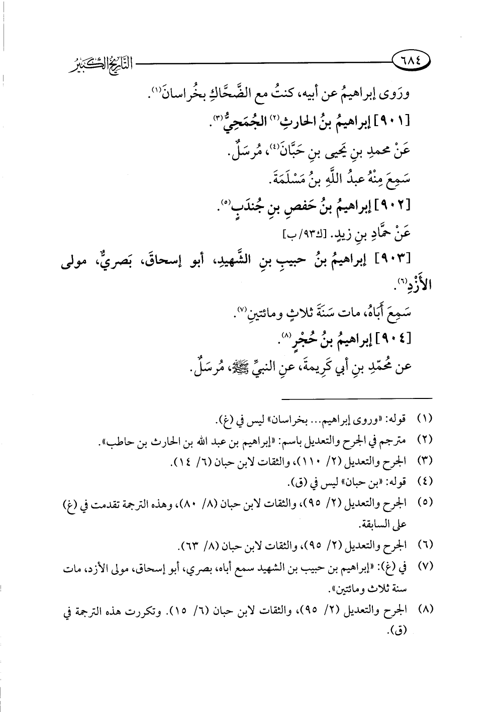 (¬٨) الجرح والتعديل (٢/ ٩٥)، والثقات لابن حبان (٦/ ١٥). وتكررت هذه الترجمة في (ق).