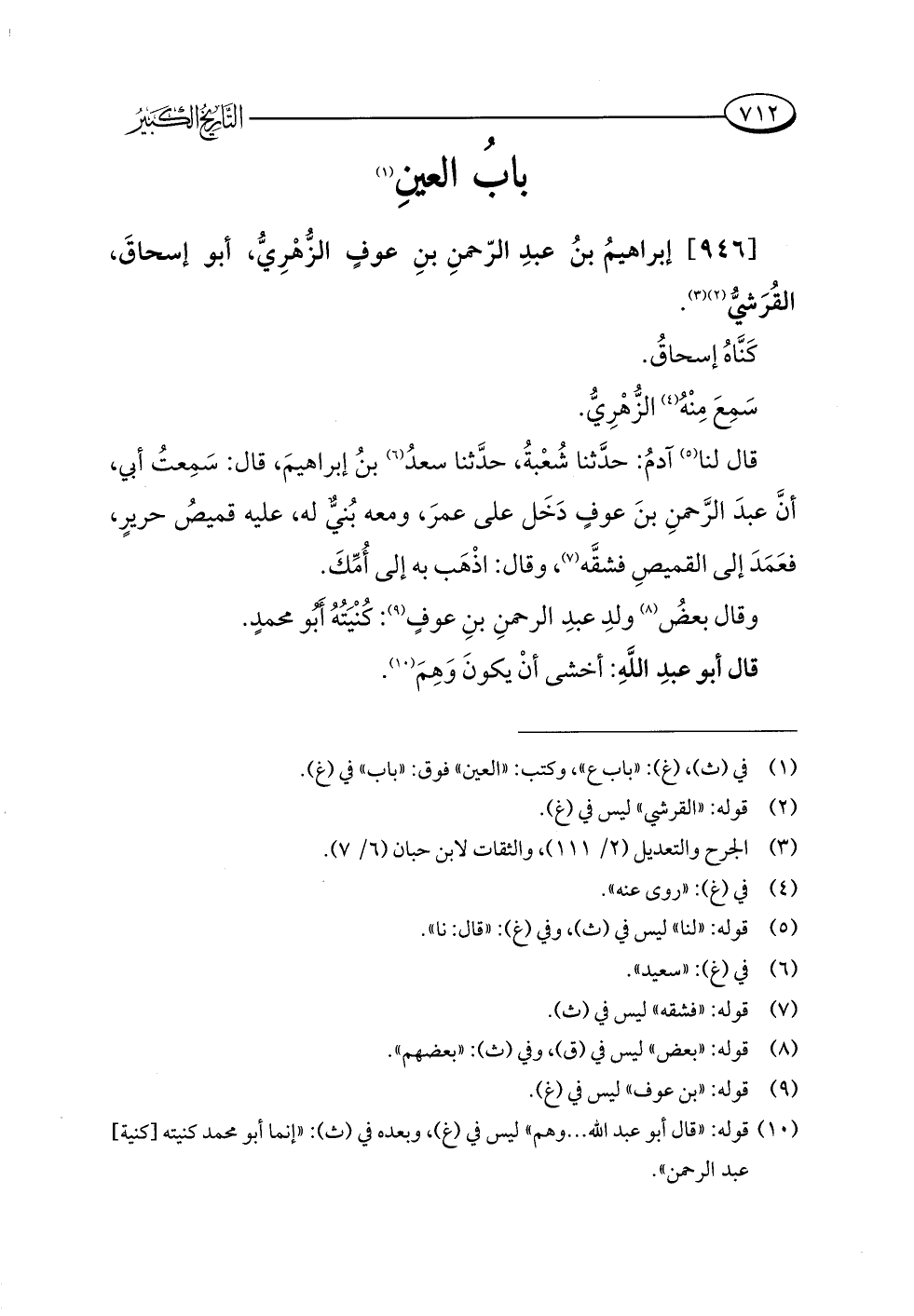 (¬١٠) قوله: "قال أبو عبد اللَّه. . . وهم" ليس في (غ)، وبعده في (ث): "إنما أبو محمد كنيته [كنية] عبد الرحمن".