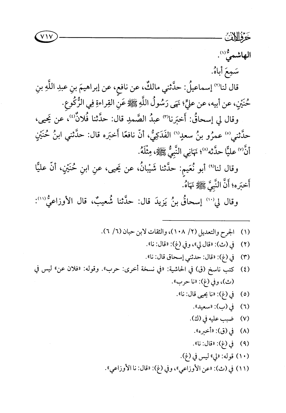 قال لنا (¬٢) إسماعيلُ: حدَّثني مالكٌ، عن نافعٍ، عن إبراهيمَ بنِ عبدِ اللَّهِ بنِ حُنَيْنٍ، عن أبيه، عن عليٍّ؛ نَهَى رَسُولُ اللَّهِ -صلى اللَّه عليه وسلم- عَنِ القِراءةِ فِي الرُّكُوعِ.